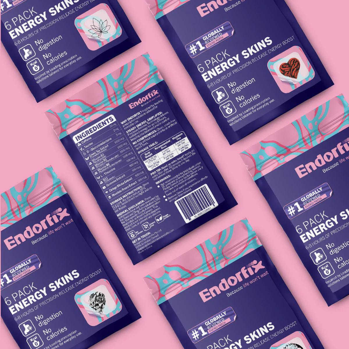 - One Pack of Each Design: Lion, Lotus, Futuristic Skull, Butterfly, and Heart 60 total patches for unstoppable momentum. Perfect for busy weeks or sharing a boost with friends.