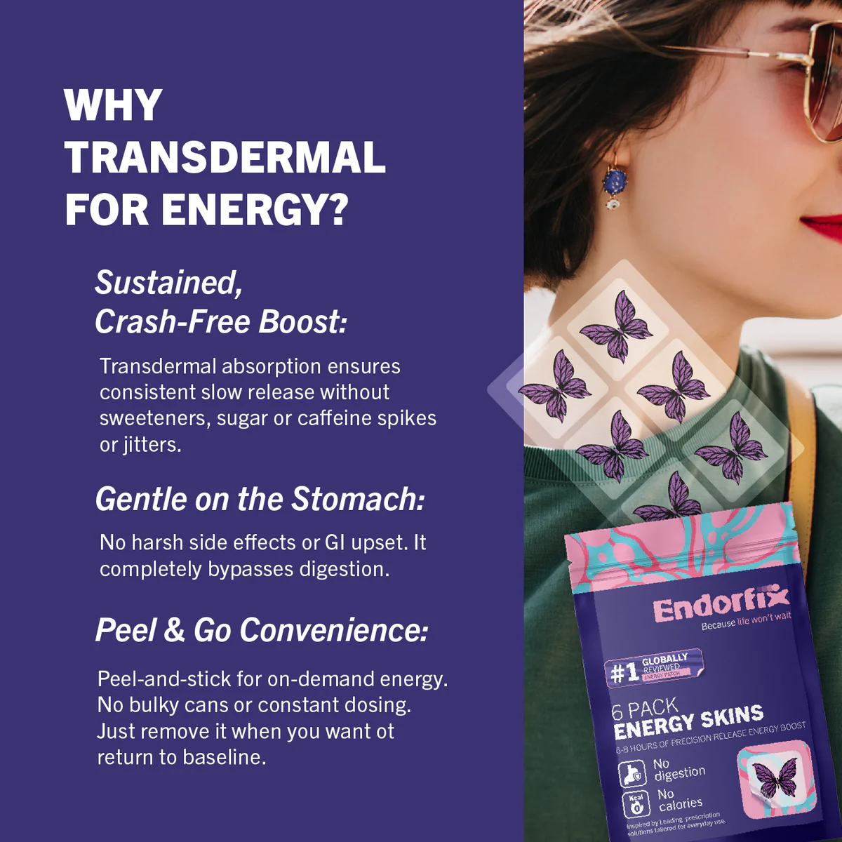 Say goodbye to sugary drinks, artificial sweeteners, and jittery highs. Each transdermal patch delivers a steady stream of clean energy so you can power through your day without crashes.